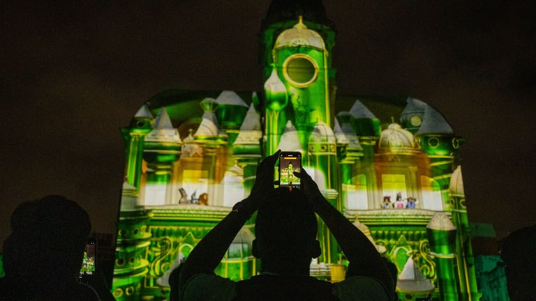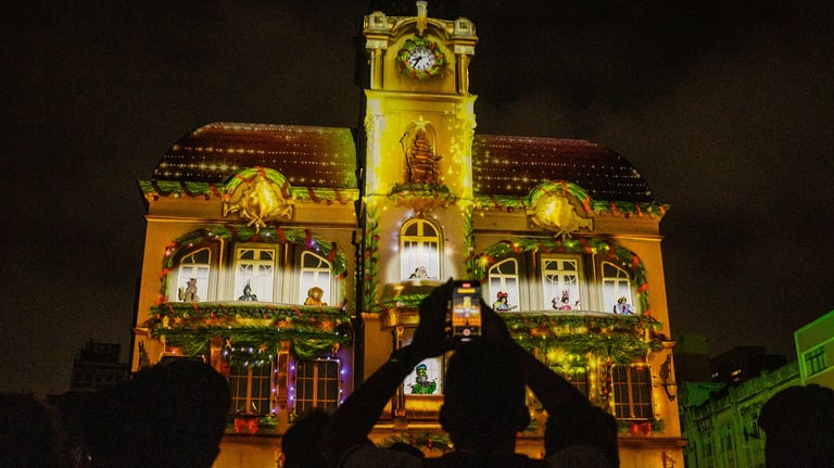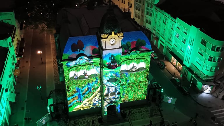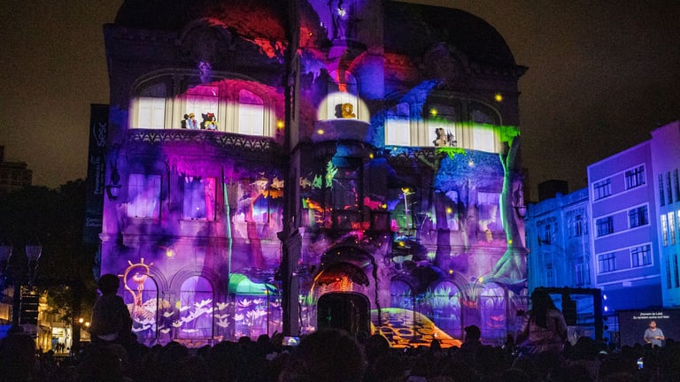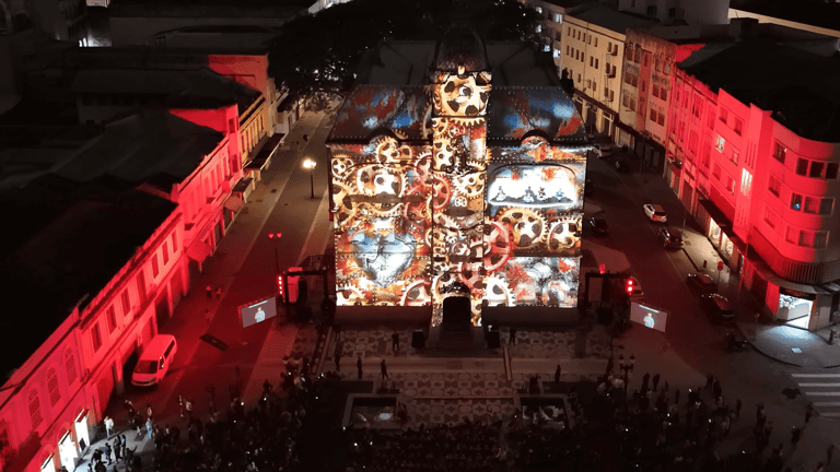 Em 2024, a convite da produtora A Labirinto, trabalhamos cenários e animações 3D para o espetáculo natalino de video mapping “Papai Noel e o Mágico de Oz”, projetado na fachada do Sesc Paço da Liberdade, em Curitiba.